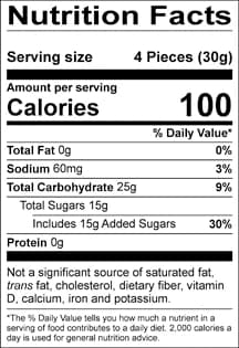 TAPIOCA SYRUP, SUGAR, MODIFIED FOOD STARCH, CONTAINS 2% OR LESS OF THE FOLLOWING: STRAWBERRY PUREE, COLOR ADDED, CITRUS PECTIN, MALIC ACID, SODIUM CITRATE, CARNAUBA WAX, LICORICE ROOT EXTRACT, NATURAL AND ARTIFICIAL FLAVOR, STRAWBERRY JUICE CONCENTRATE, VEGETABLE OILS* (CANOLA AND COCONUT). *Adds a trivial amount of fat.
